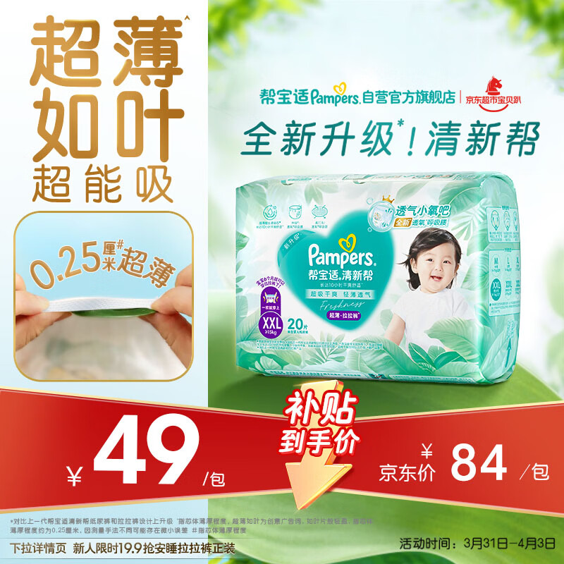 帮宝适超薄透气清新帮拉拉裤新生儿婴儿尿不湿尿片透氧Pro mini XXL20
