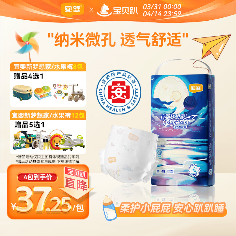 宜婴新梦想家婴儿纸尿裤M48片超薄透气 【品牌直供 安心品质】