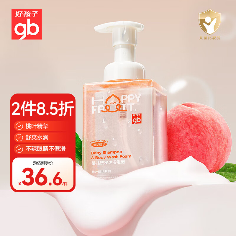 好孩子(gb)婴儿洗发水沐浴泡泡500ml桃叶精华温和清洁四季舒润保湿