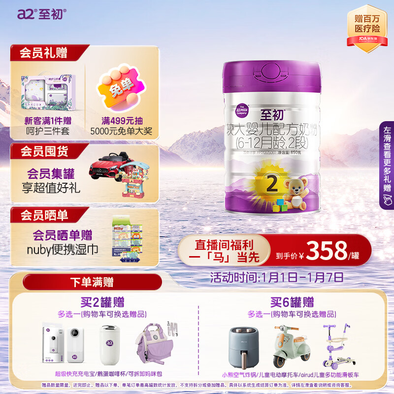 a2至初 2段较大婴儿配方奶粉(6-12月龄)850g 新西兰进口 新国标