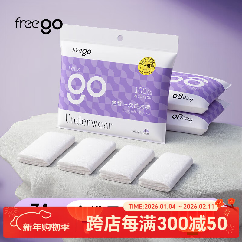 Freego纯棉一次性内裤女全棉灭菌免洗孕妇生理期旅行出差女白XL5条装
