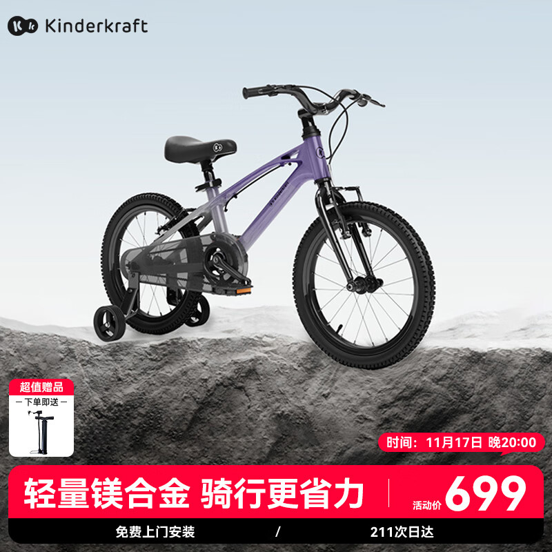 KinderKraftkk儿童自行车4-6-12岁学生单车青少年男女孩礼物山地车幻影16寸紫