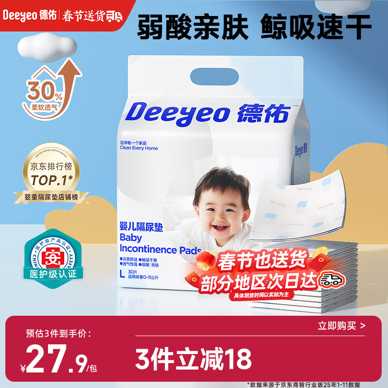 德佑 婴儿一次性隔尿垫30片45*60cm护理垫吸水不反渗建议12kg以内