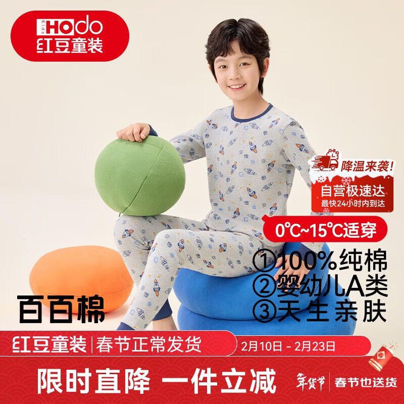 红豆纯棉秋衣秋裤中大童秋冬内衣套装儿童居家睡衣M1117火箭卫星150
