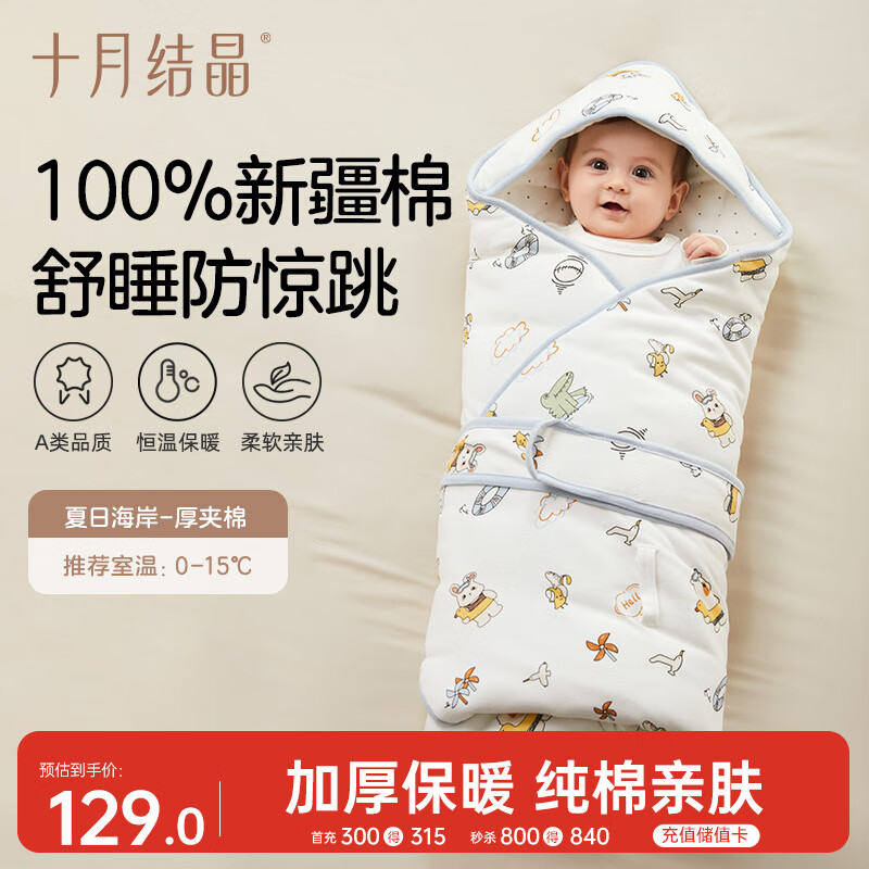 十月结晶婴儿抱被包被新生儿秋冬纯棉防惊跳睡袋包裹巾厚夹棉 夏日海岸