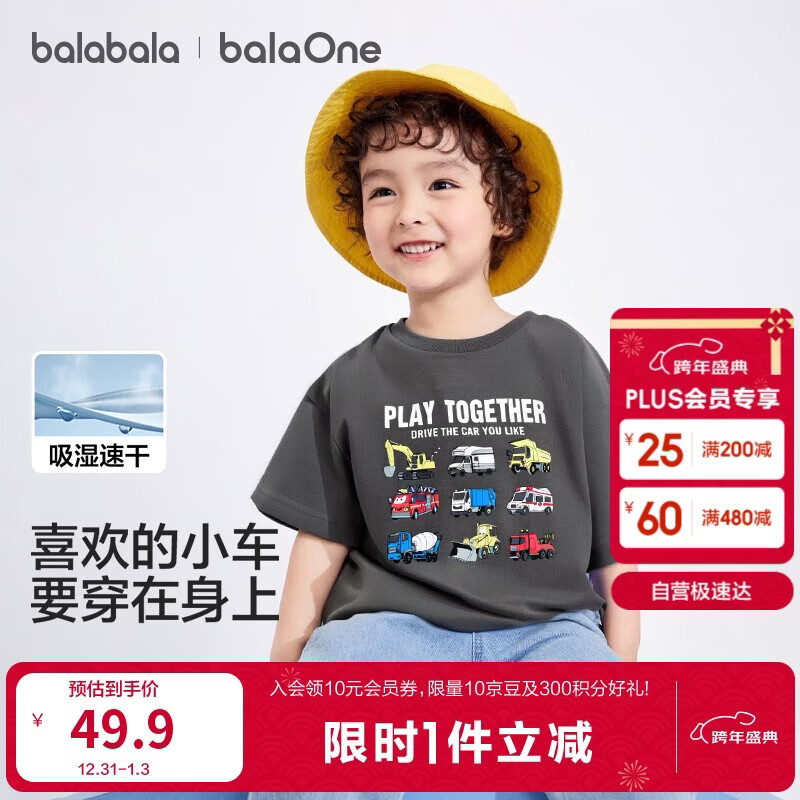 巴拉巴拉童装儿童t恤短袖上衣男童2025夏装吸湿速干卡通208225117110