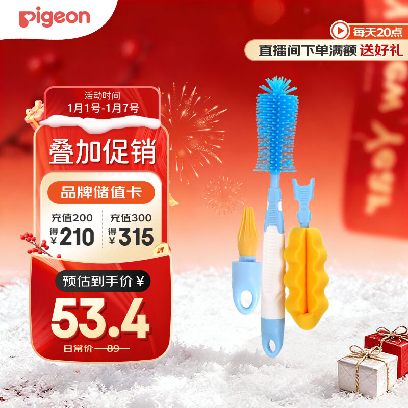 贝亲(Pigeon)奶瓶奶嘴刷套装便携多功能硅橡胶奶瓶刷+海绵奶瓶刷+奶嘴刷 EA08