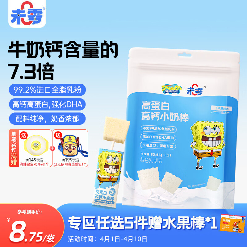 未零 海绵宝宝牛奶棒高钙高蛋白奶棒 儿童宝宝零食棒棒糖30g