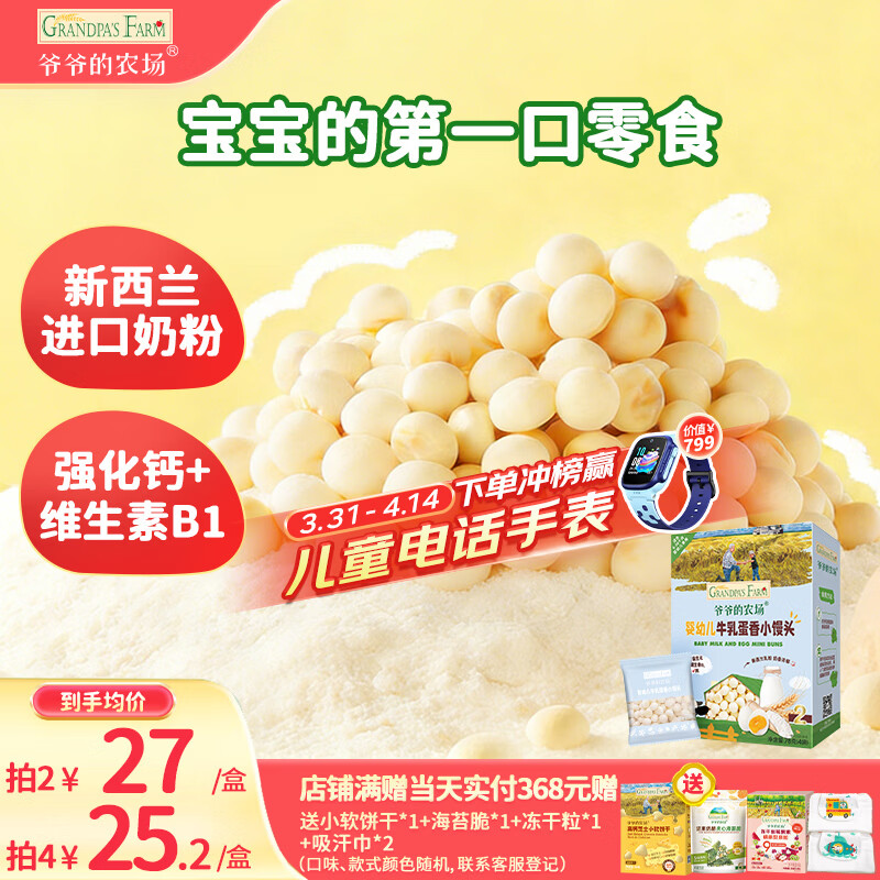 爷爷的农场婴幼儿牛乳蛋香小馒头78g 宝宝儿童零食 婴儿零食6-12个月