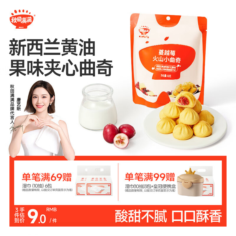 秋田满满火山小曲奇儿童零食磨牙手指饼干蔓越莓味儿童下午茶点心60g