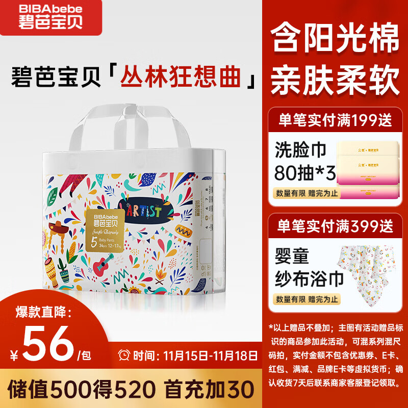 碧芭宝贝丛林狂想曲拉拉裤XL码34片(12-17kg)学步裤超薄 秋冬不闷