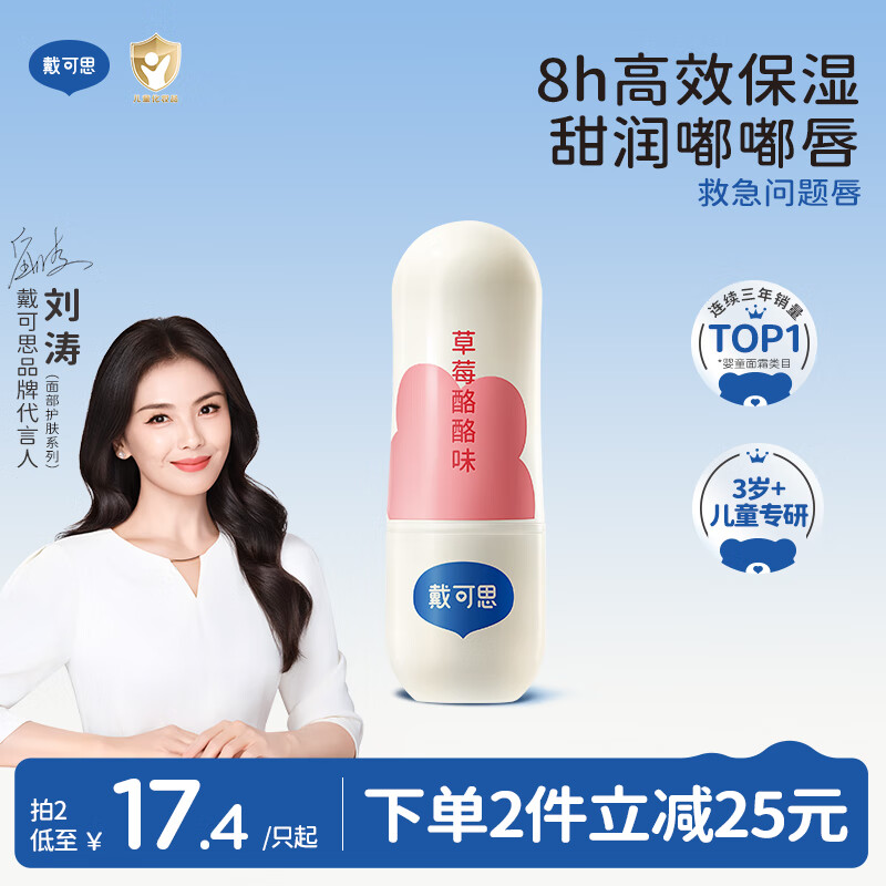 戴·可·思(Dexter)儿童元气润唇膏草莓酪酪味3.6g 奶茶系列宝宝护唇膏 保湿滋润