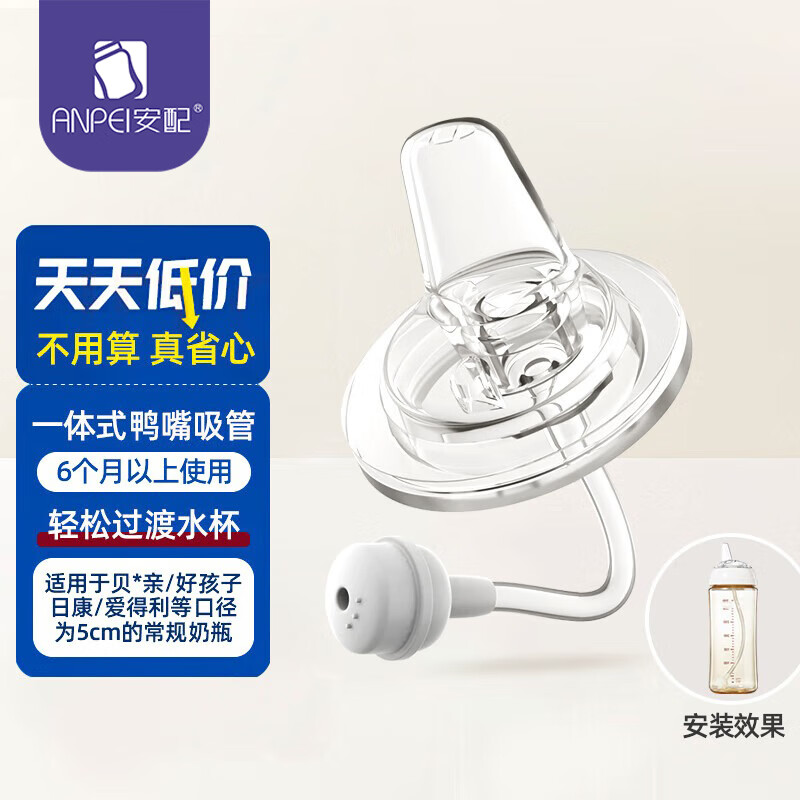 安配通用宽口径鸭嘴吸管组 奶瓶配件AP2249(适配贝亲/好孩子等奶瓶)