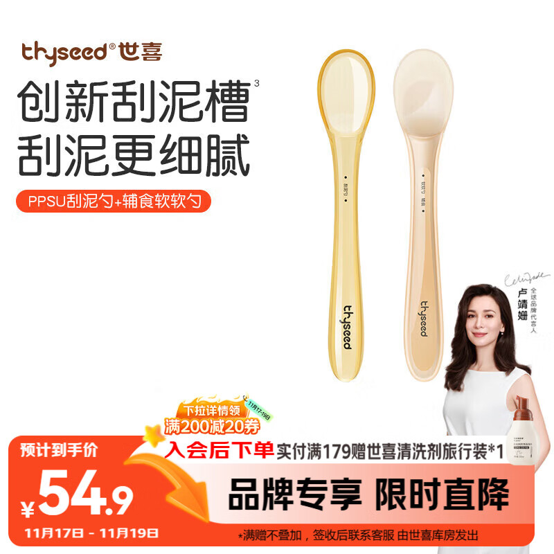 世喜硅胶勺婴儿新生儿果泥米糊勺宝宝喂水奶儿童餐具辅食勺+刮泥勺