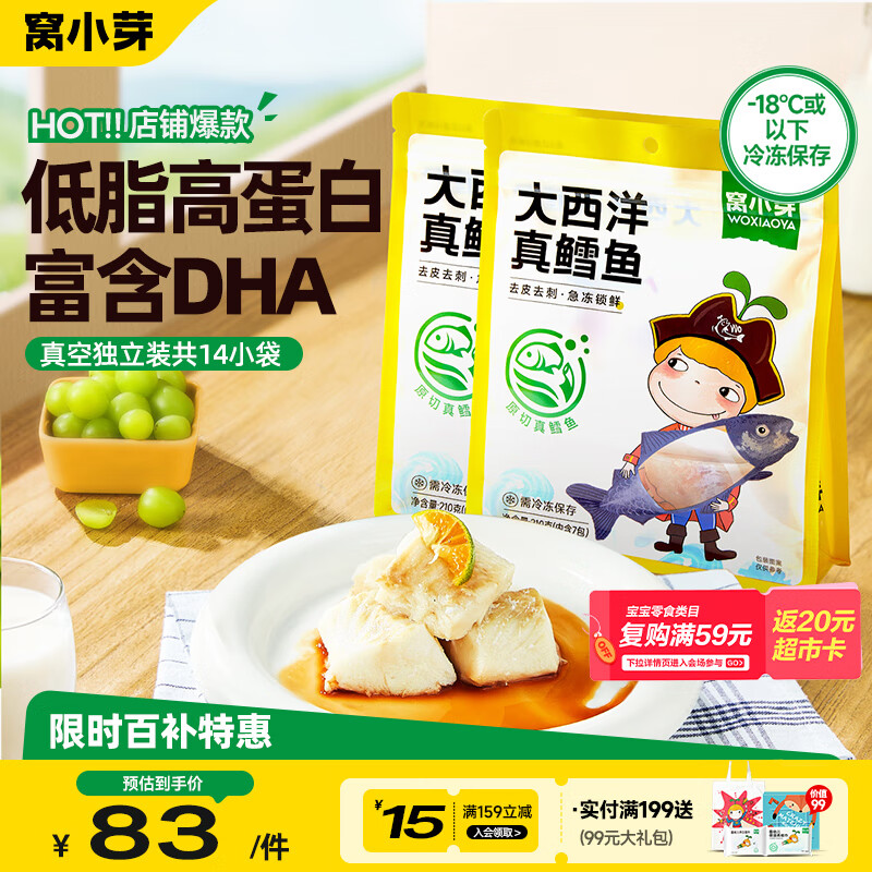 窝小芽大西洋真鳕鱼 原切鳕鱼儿童早餐高蛋白享婴幼儿宝宝食谱420g/2袋