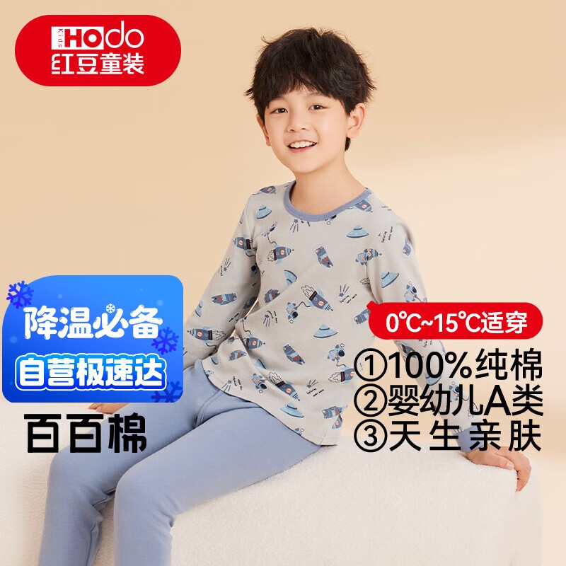 红豆儿童纯棉内衣套装男女童秋衣秋裤秋冬保暖低领棉毛衫M1209月灰140