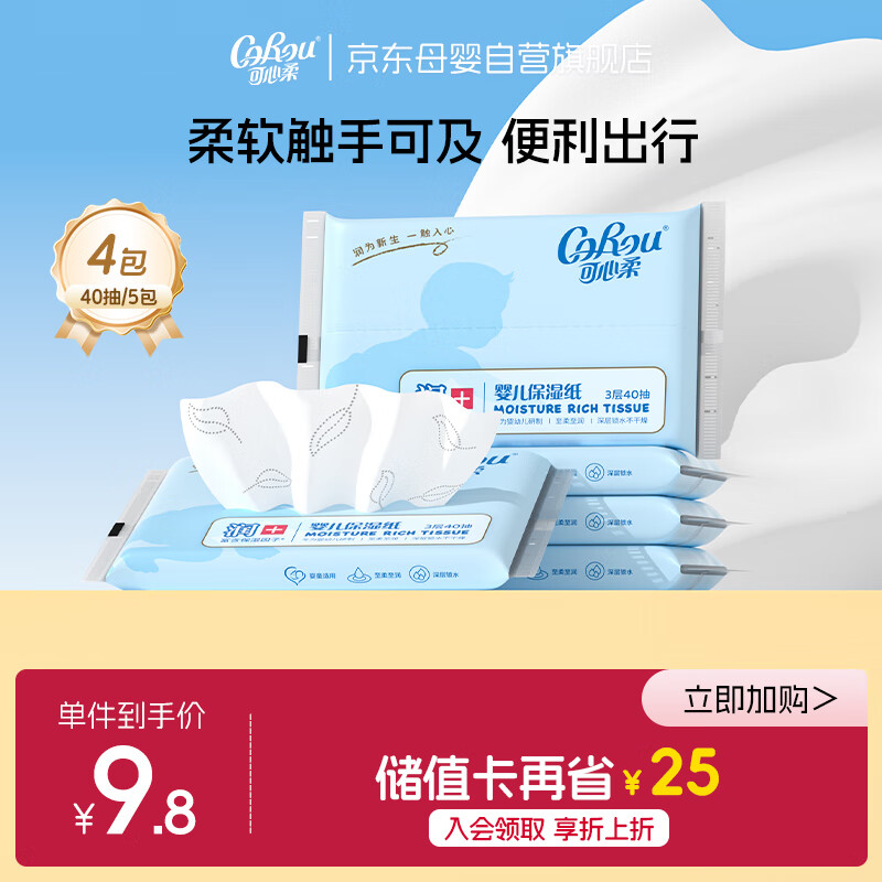 可心柔婴儿纸巾云柔巾3层40抽5包抽纸乳霜纸便携装婴童适用