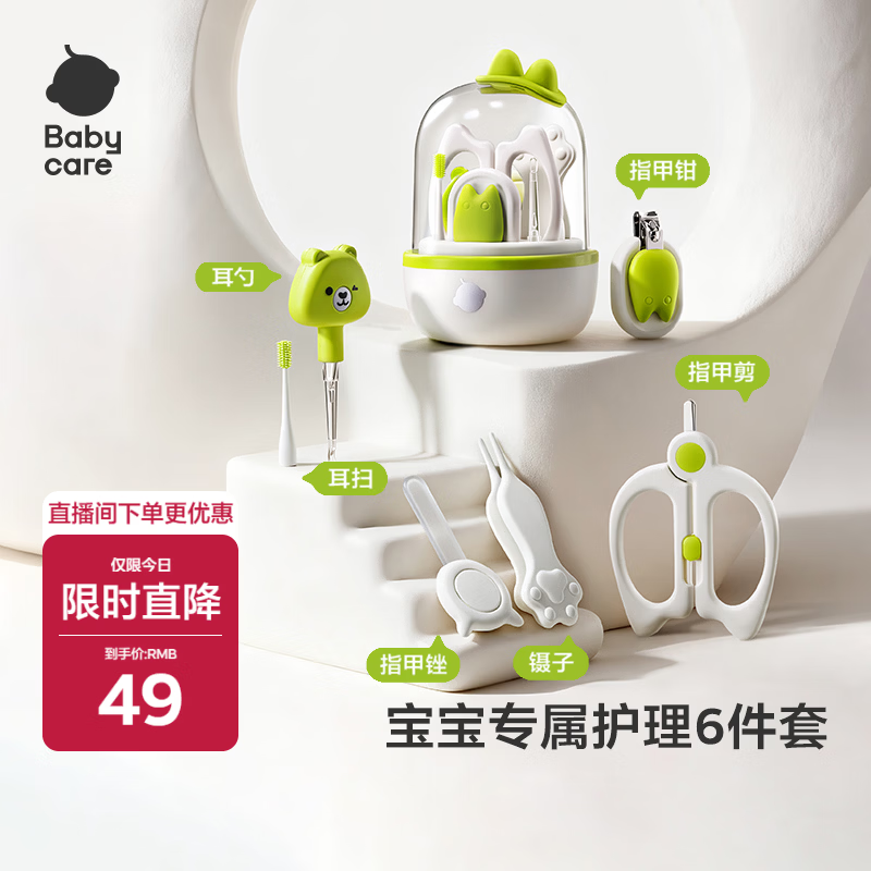 babycare婴儿指甲剪套装宝宝指甲刀镊子新生儿0岁+可视耳勺发光耳勺6件套