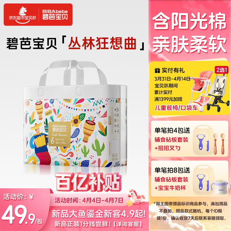 碧芭宝贝丛林狂想曲拉拉裤XXL码32片(≥15kg)加大码 超薄透气 亲肤不闷