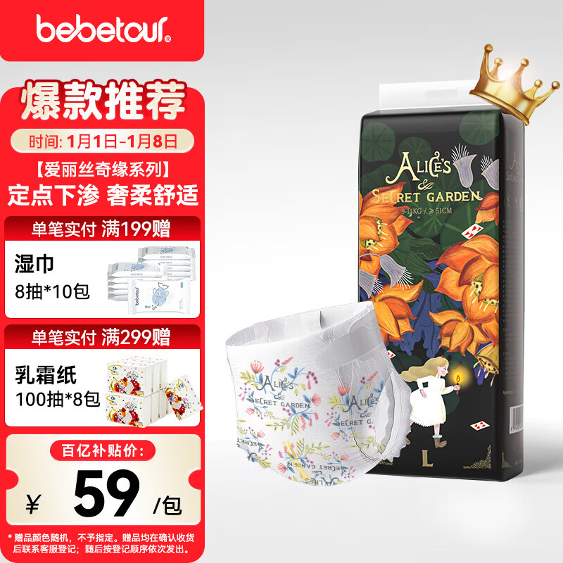 bebetour爱丽丝奇缘纸尿裤L42(9-14kg)婴儿定点下渗【品牌直供 安心品质】