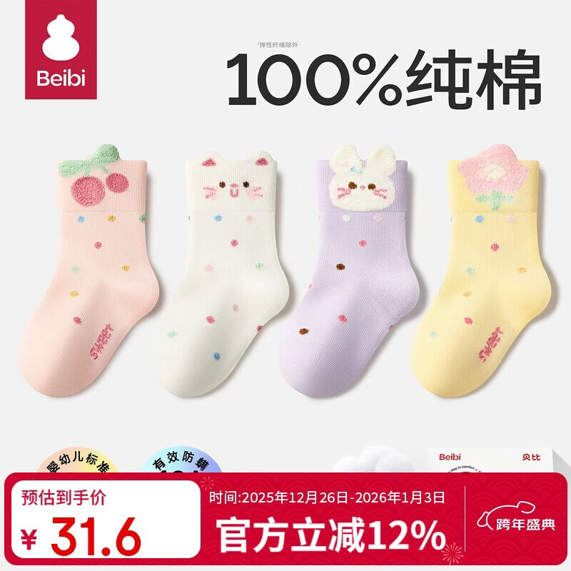 贝比婴儿袜子春秋款纯棉a类女童中筒袜无骨冬季新生幼儿宝宝袜不勒腿