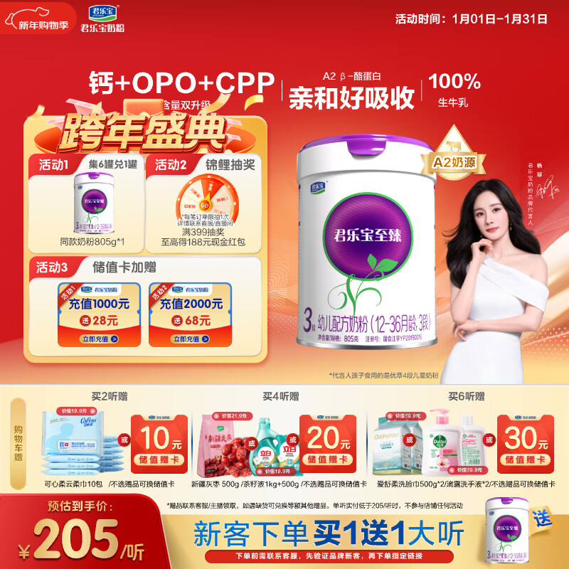 君乐宝(JUNLEBAO)至臻 A2奶牛奶粉3段(12-36月龄)听装805g 添加OPO