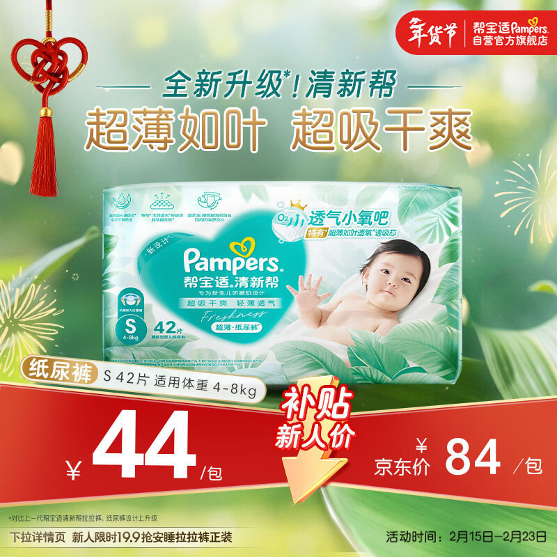 帮宝适超薄透气清新帮纸尿裤新生儿婴儿尿不湿尿片透氧Pro mini S42