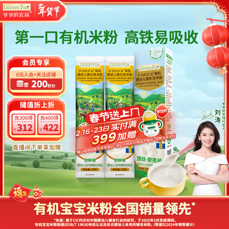 爷爷的农场婴幼儿有机高铁米粉6-12个月原味尝鲜装30g 辅食 加铁米糊6月龄
