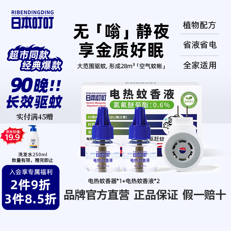日本叮叮驱蚊液电蚊香驱蚊水90晚1器+2液45ml防蚊灭蚊无香型防基孔肯雅热