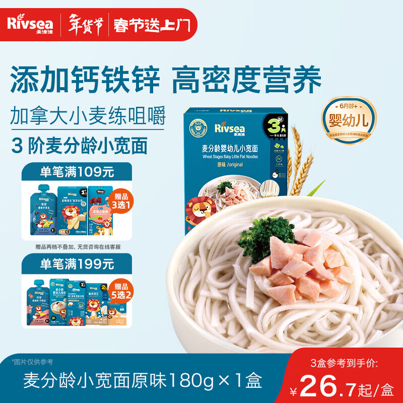 禾泱泱婴幼儿小宽面原味180g含钙铁锌麦分龄面条宝宝辅食6月+