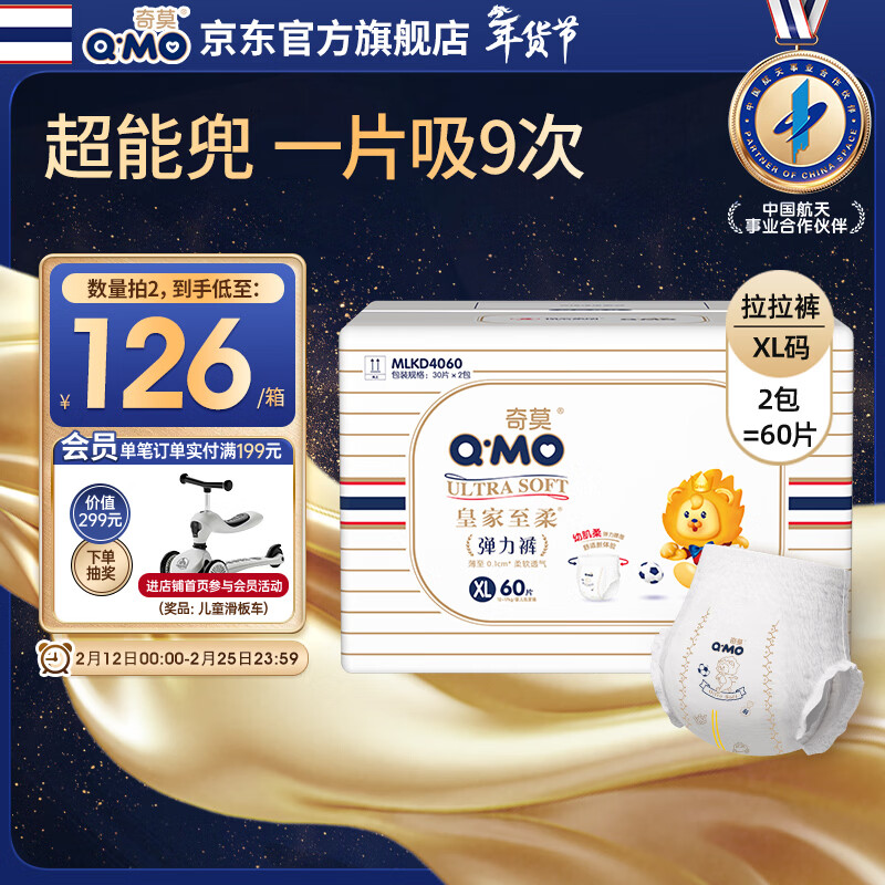 奇莫Q-MO皇家至柔拉拉裤XL60片(12-17kg)电商装加大码弹力裤薄透能吸