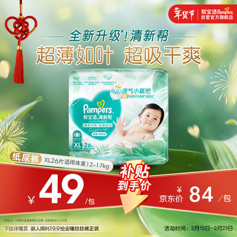 帮宝适超薄透气清新帮纸尿裤新生儿婴儿尿不湿尿片透氧Pro mini XL26