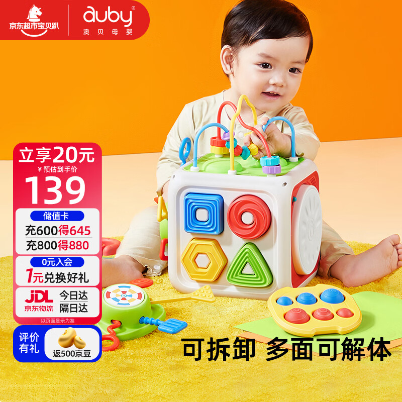 澳贝(auby)六面体婴儿玩具忙碌绕珠游戏盒蒙氏早教益智多面体百宝箱生日礼物