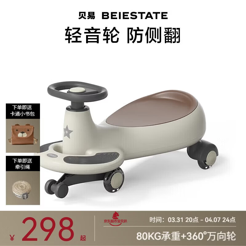 贝易BEIESTATE典藏扭扭车 1-6岁宝宝摇摇车大人可坐宝宝周岁礼物无音乐 云母灰