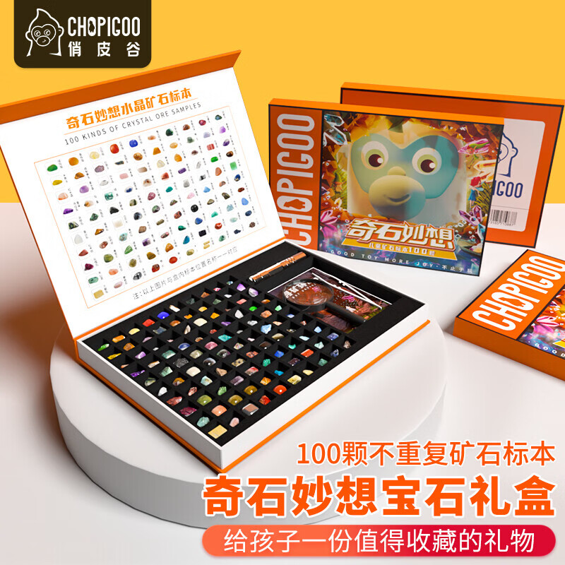 俏皮谷儿童矿石标本100种奇石妙想宝石头科普玩具礼盒男女孩生日礼物