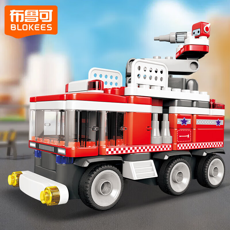 布鲁可积木人 大颗粒拼装积木玩具交通工具-布布百变消防车生日礼物