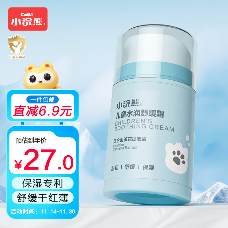 小浣熊 儿童面霜滋润保湿霜 水润舒缓 婴儿宝宝按压式四季润肤霜 50g