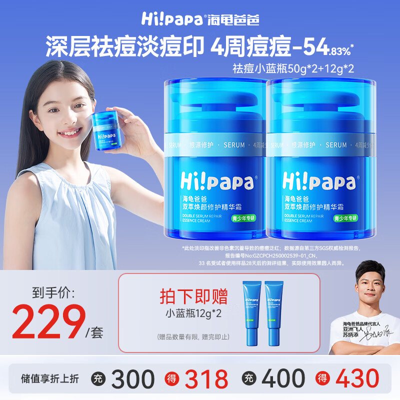 Hi!papa海龟爸爸面霜祛痘小蓝瓶青少年护肤品男女保湿秋冬儿童面霜50g*2