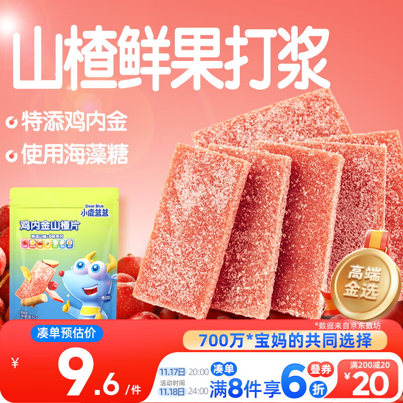 小鹿蓝蓝 鸡内金六物山楂片 宝宝儿童零食添加鸡内金独立小包装 60g