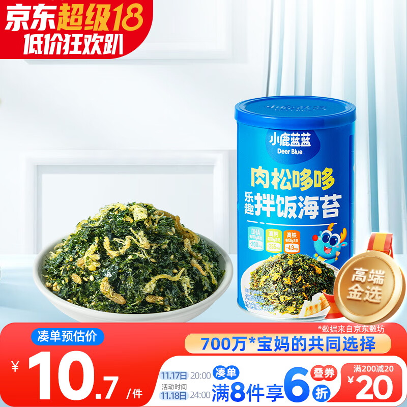小鹿蓝蓝宝宝DHA鳕鱼肉松拌饭海苔碎40g儿童零食营养调味下饭佐餐寿司材料
