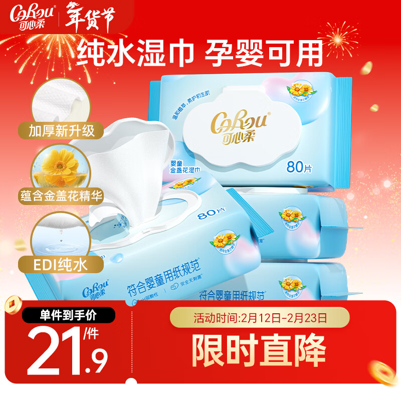 可心柔(COROU) 湿巾婴幼儿手口湿纸巾新生儿专用80抽4大包