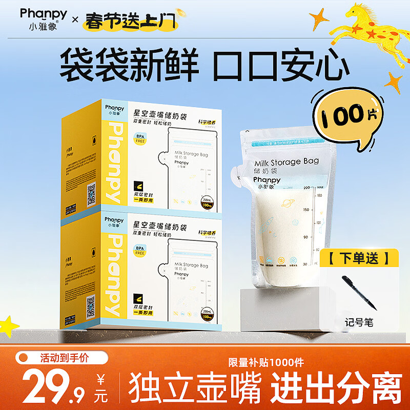 小雅象一次性储奶袋母乳储存袋保鲜袋小容量奶水存奶袋 200ml*100片