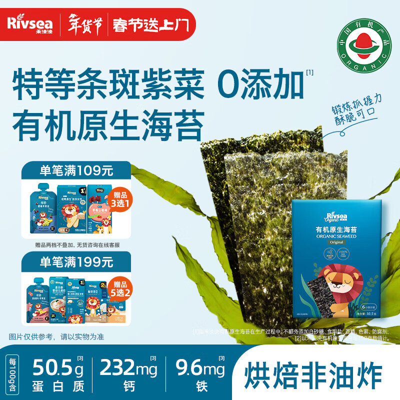 禾泱泱有机原生海苔片原味10.5g 儿童宝宝零食出游小零食无添加食用盐