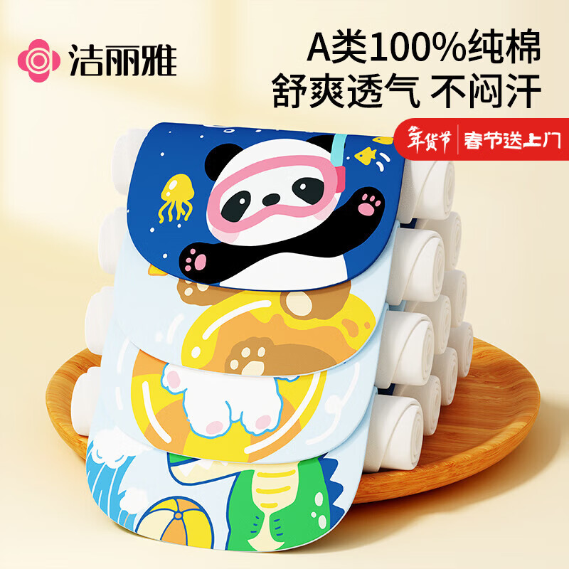 洁丽雅(Grace)A类纯棉婴儿吸汗巾幼儿园3-6岁儿童垫背巾卡通4层纱布隔汗垫5条装