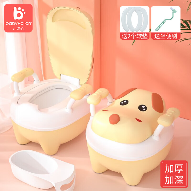 小哈伦儿童马桶宝宝坐便器婴幼儿尿盆小孩坐便器小便器双软垫柠黄0-6岁
