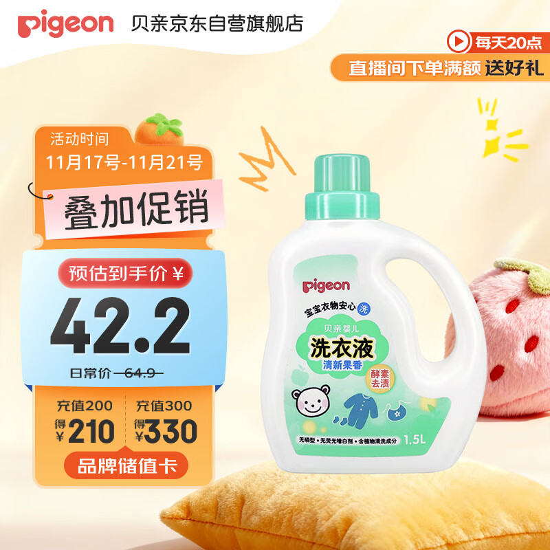 贝亲(Pigeon)婴儿宝宝儿童专用酵素去污洗衣液温和植萃(清新果香)1.5L实惠装
