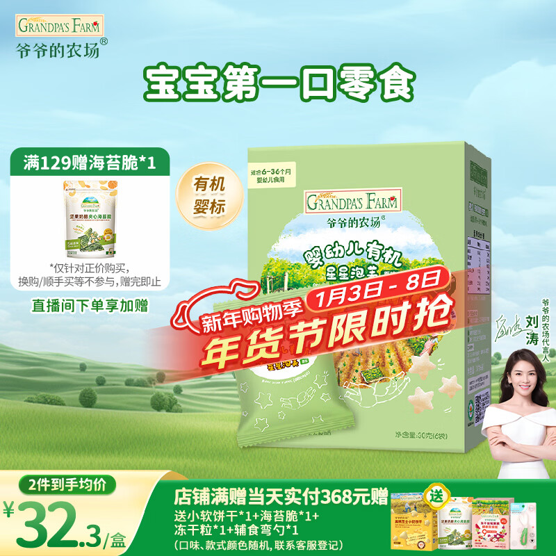 爷爷的农场有机婴幼儿星星泡芙原味30g 宝宝儿童零食 婴儿零食6-12个月
