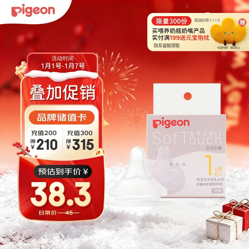 贝亲(Pigeon)自然实感第3代启衔奶嘴 宽口径奶嘴 S号-1只装 1个月以上 BA130