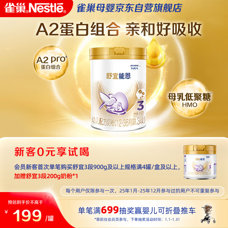 雀巢(Nestle)舒宜能恩3段900g (12-36月)A2 HMO奶粉 原雀巢能恩升级舒宜能恩