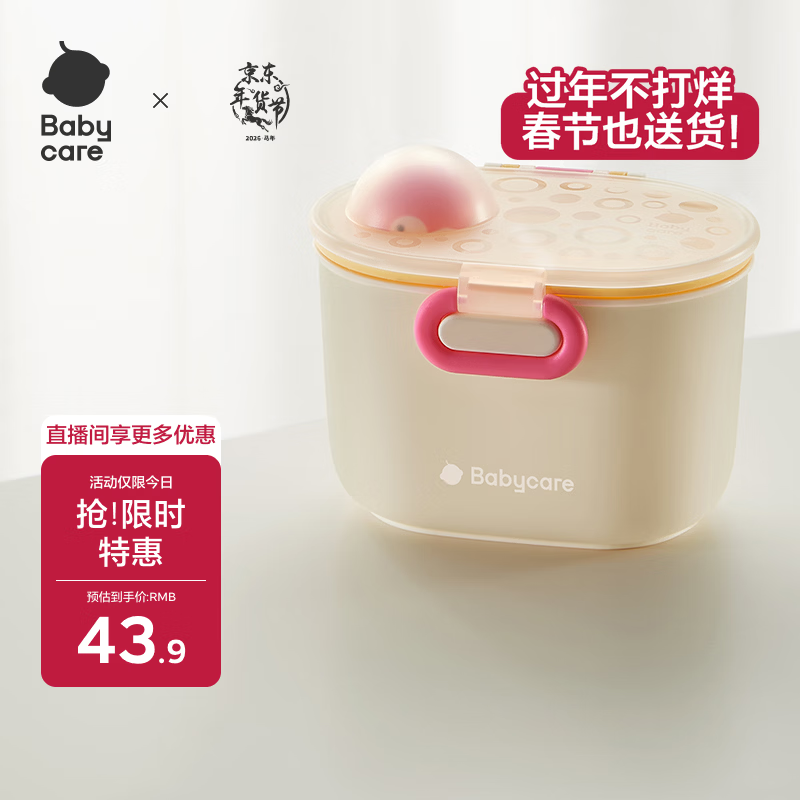 babycare婴儿奶粉盒宝宝便携奶粉辅食储存盒大容量恐龙奶粉盒 奶油黄380ml